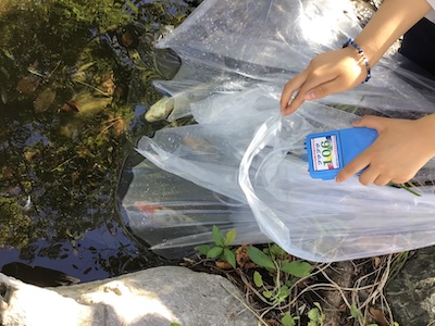 そこへ、生徒の親戚の方のご厚意で、3匹の鯉を放流してもらえました。