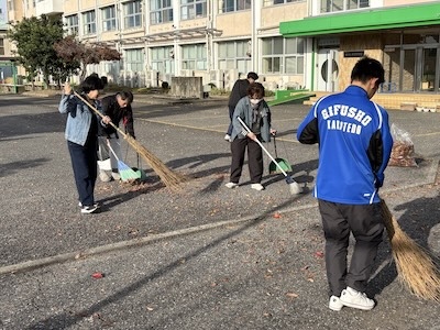 本荘中学校のボランティアの生徒が積極的に働いていました
