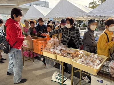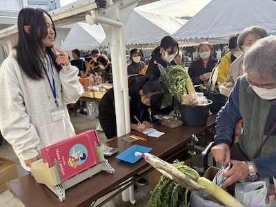 朝市には、多くの方が新鮮な野菜を買いにみえました